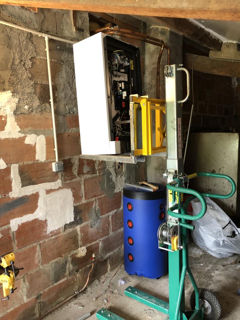 Voici l’installation d’une pompe à chaleur air/eau de marque Viessmann vitocal 200-S ainsi qu’un chauffe eau électrique Malicio de chez Thermor en remplacement d’un ancienne chaudière Fioul. Après un rinçage de l’installation de chauffage nous avons pu remettre le tout en service.